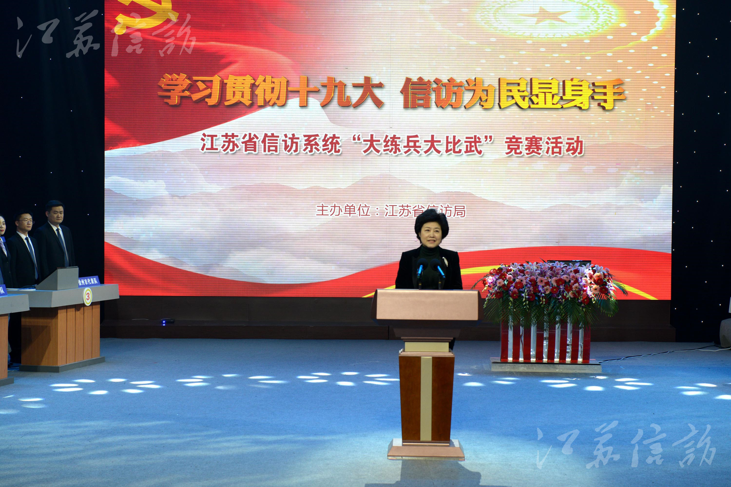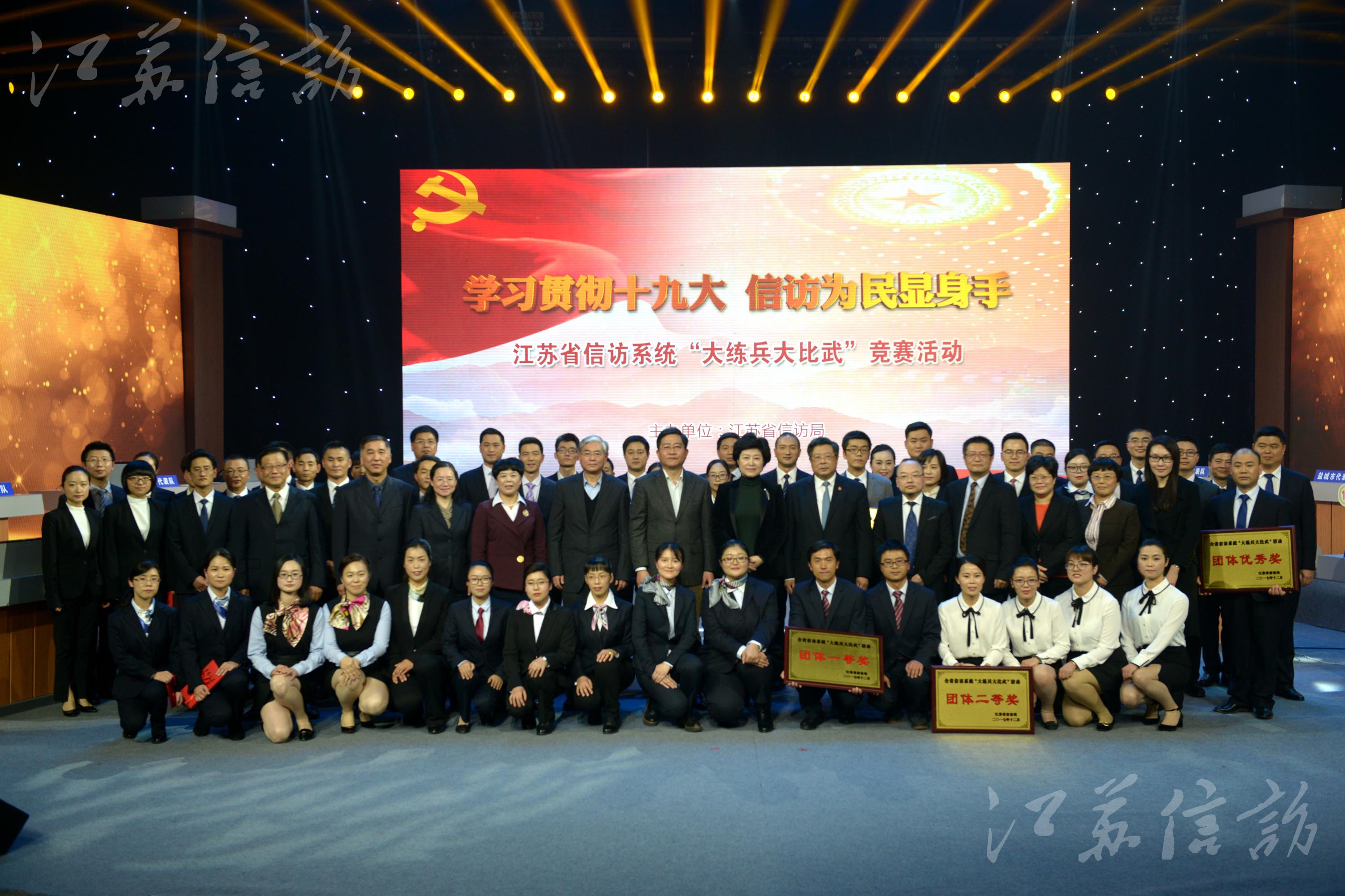 为深入学习贯彻党的十九大精神,深刻领会习近平新时代中国特色社会主义思想,着力建设一支对党忠诚可靠、恪守为民之责、善做群众工作的高素质信访工作队伍,不断开创信访工作新局面,切实履行好新时代信访部门的职责使命,根据省委、省政府年度信访工作会议确定的重点工作要求,2017年12月26日下午,省信访局在江苏广电总台教育频道演播厅举办了以“规范信访基础业务”为主题的“学习贯彻十九大信访为民显身手”——全省信访系统“大练兵大比武”竞赛活动。 信访基础业务是信访工作的核心组成部分,直接影响着信访工作质量效率乃至社会公信力,把基础业务做实筑牢,能够更加有力地推动问题解决,进一步提升群众满意率。为此,2017年初,省信访局党组决定在全省信访系统开展“大练兵大比武”活动,作为大力实施信访工作队伍能力提升工程的一项重要内容,列入省信访局2017年实施的十项重点项目。活动开展以来,全省各级信访部门高度重视,积极响应,认真组织,近4000名信访干部分层、分批参加了各类学习培训、专题研讨和业务竞赛。通过活动,各级信访部门“四个意识”进一步增强,基础业务进一步规范,干部履职能力进一步提高,信访工作队伍精气神明显提升。